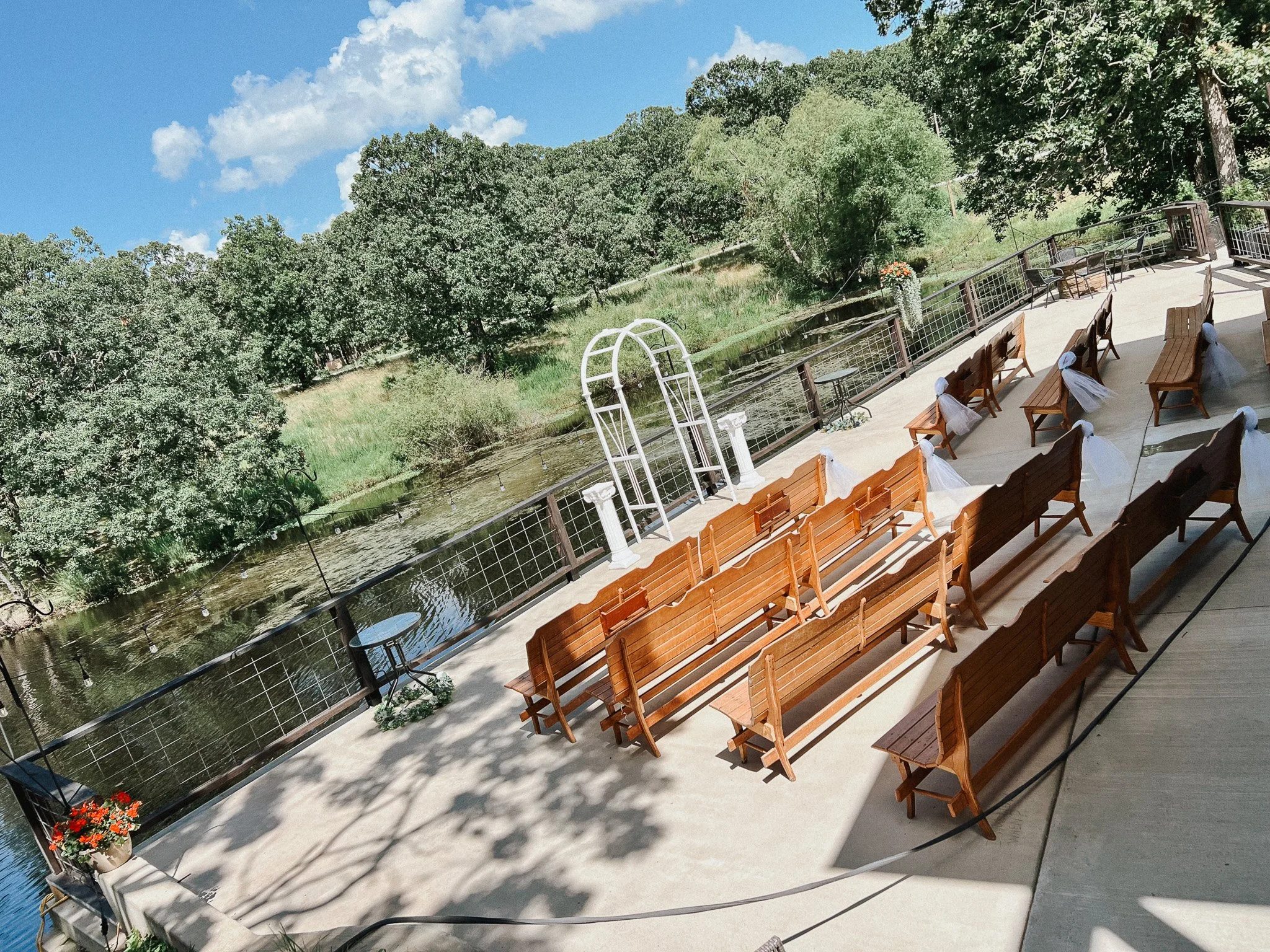 The ceremony and reception can be held under the covered pavilion. Additional tent rentals upon request.